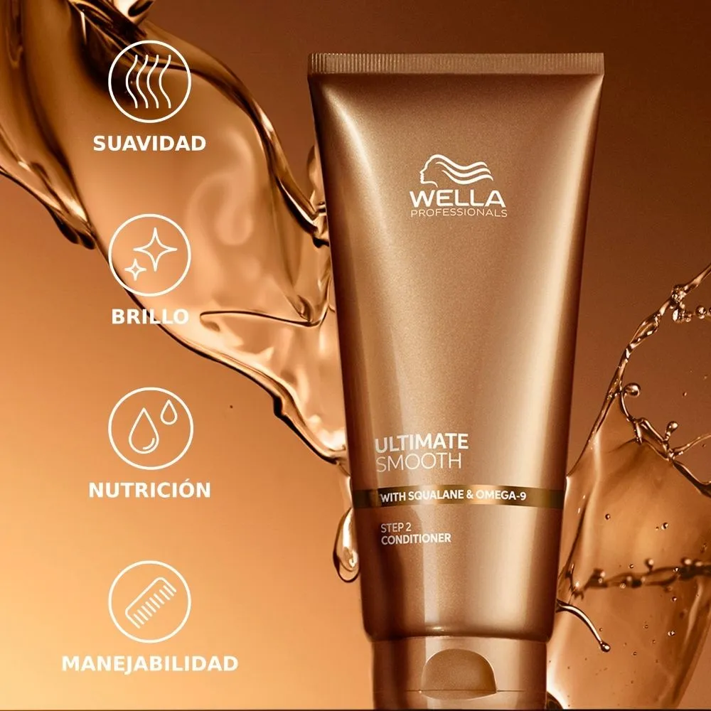 Para mejores resultados, complementa el uso con la Acondicionador Ultimate Smooth Wella 200ml una vez por semana.