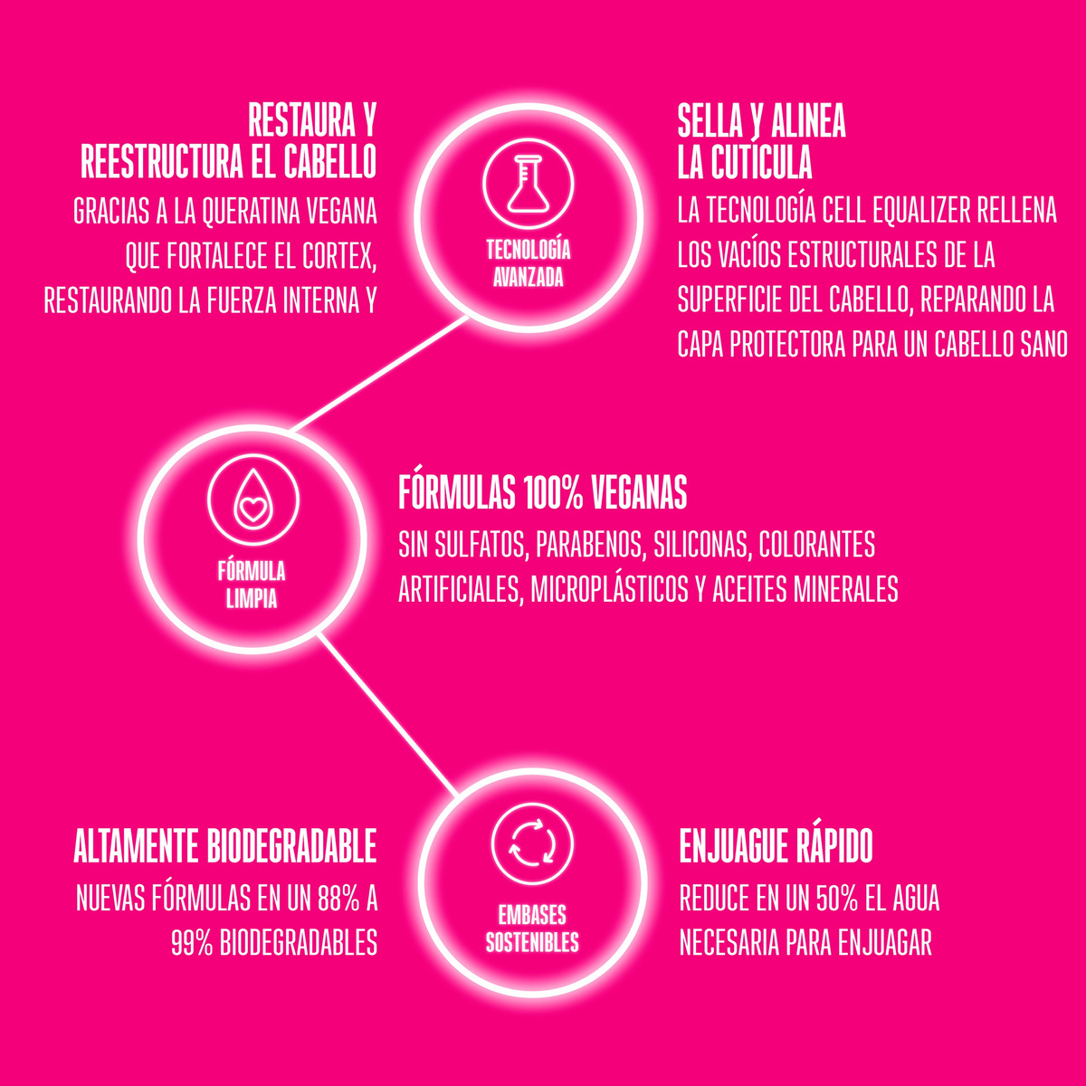 -Reequilibrar la estructura del cabello a un pH óptimo de 4,5