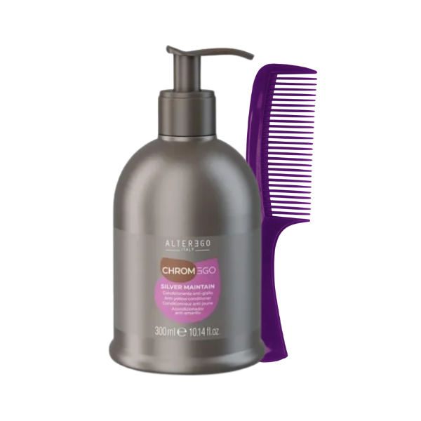 Acondicionador Silver Alter Ego Matizante es el aliado imprescindible para mantener rubios, grises y cabellos decolorados con un tono frío impecable. Este acondicionador matizante profesional neutraliza reflejos amarillos no deseados mientras hidrata y suaviza la fibra capilar, logrando un cabello más luminoso, equilibrado y visiblemente saludable desde la primera aplicación.