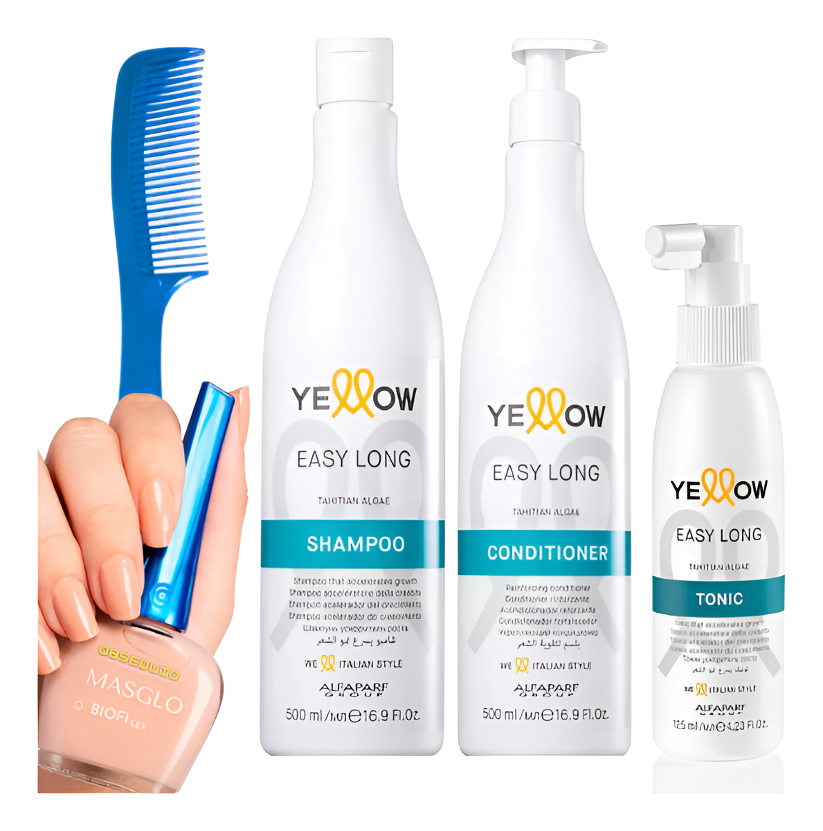Cada producto está formulado con ingredientes activos seleccionados que trabajan en sinergia para ofrecer una rutina de cuidado efectiva, segura y placentera. La línea Easy Long de Yellow by Alfaparf ha sido desarrollada para personas que buscan una solución profesional para el crecimiento capilar lento o debilitado, sin comprometer la salud del cuero cabelludo ni la textura del cabello.